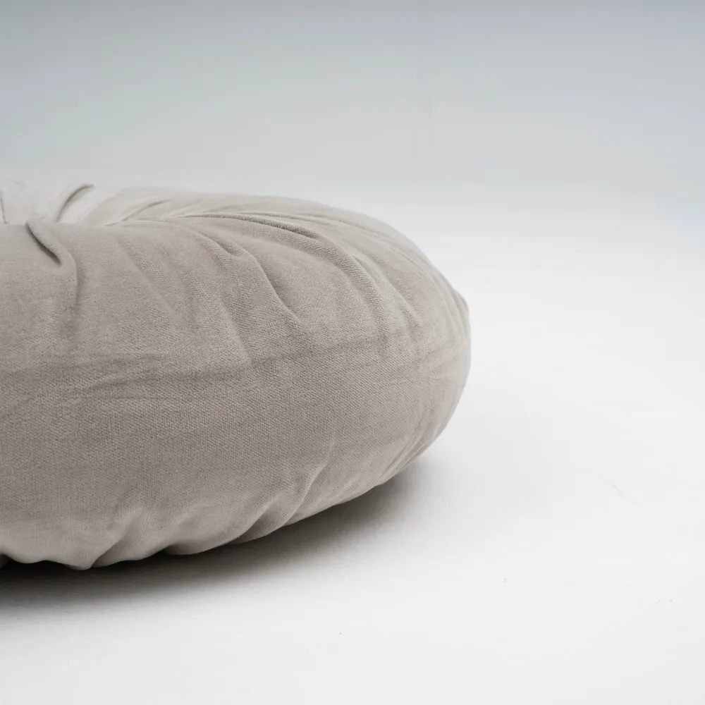 O seu design é redondo e em veludo de cor lisa, com um botão central que lhe confere um toque mais original.