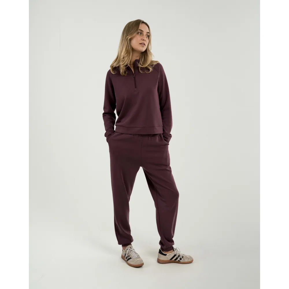 Camisola de manga comprida com gola alta e meia abertura com acabamentos nos punhos e na cintura para garantir conforto.