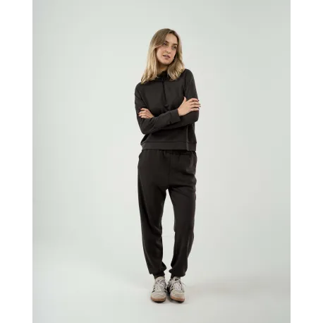 Camisola de manga comprida com gola alta e meia abertura com acabamentos nos punhos e na cintura para garantir conforto.