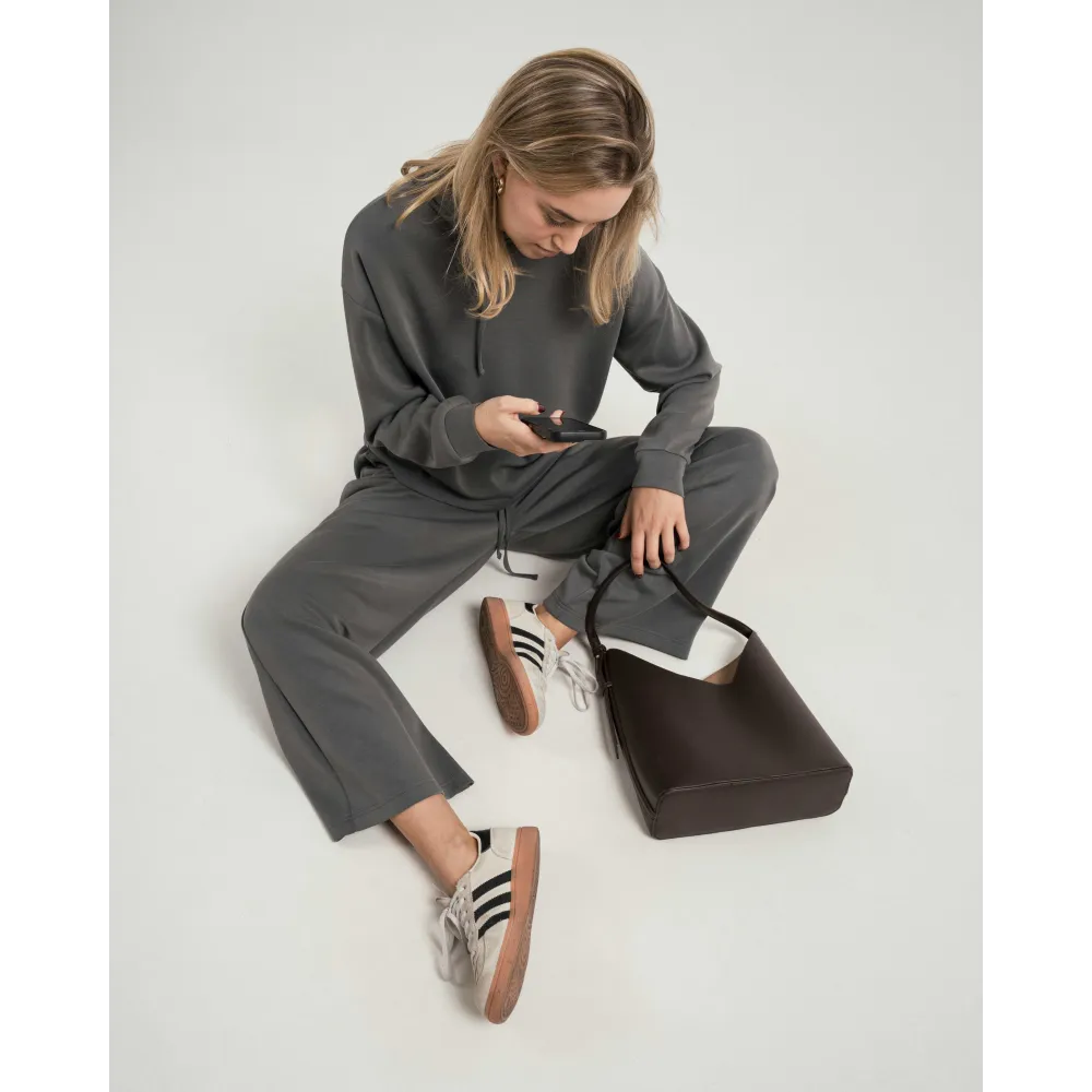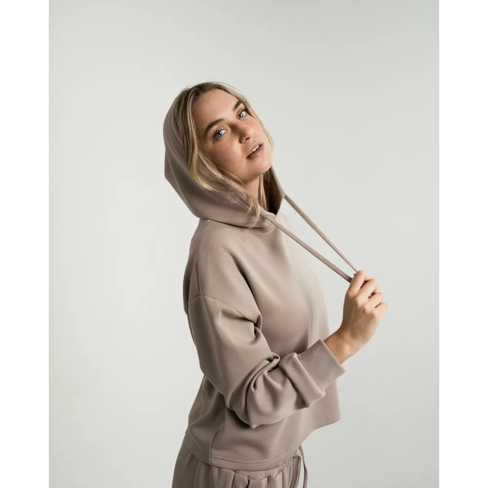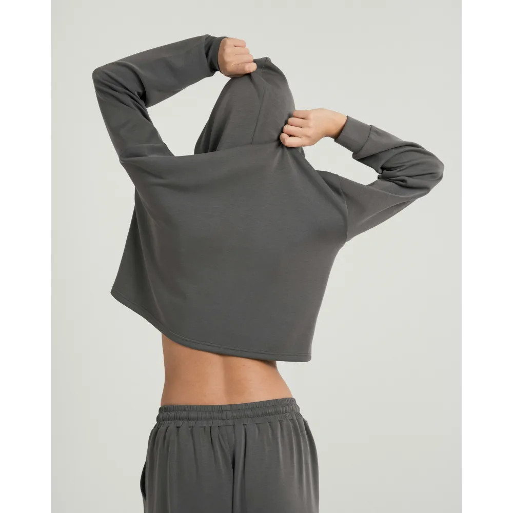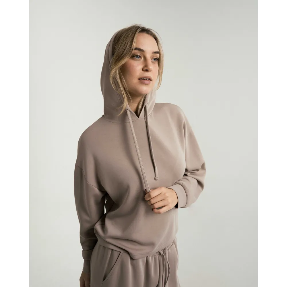 Camisola de manga comprida caída com capuz e cordões ajustáveis, que a tornam numa peça prática e versátil.