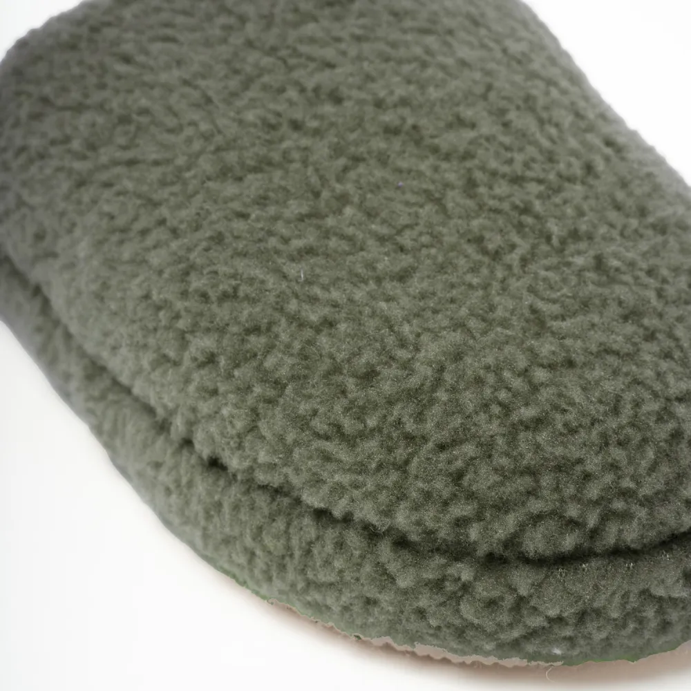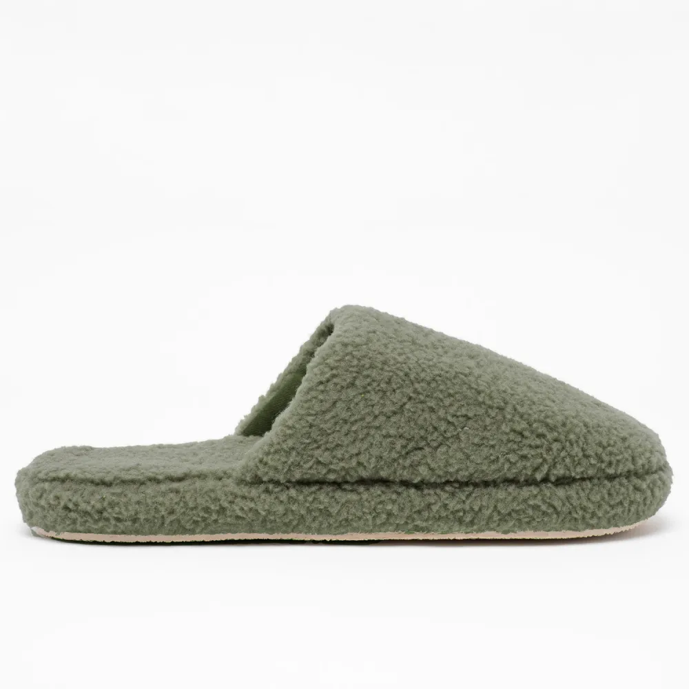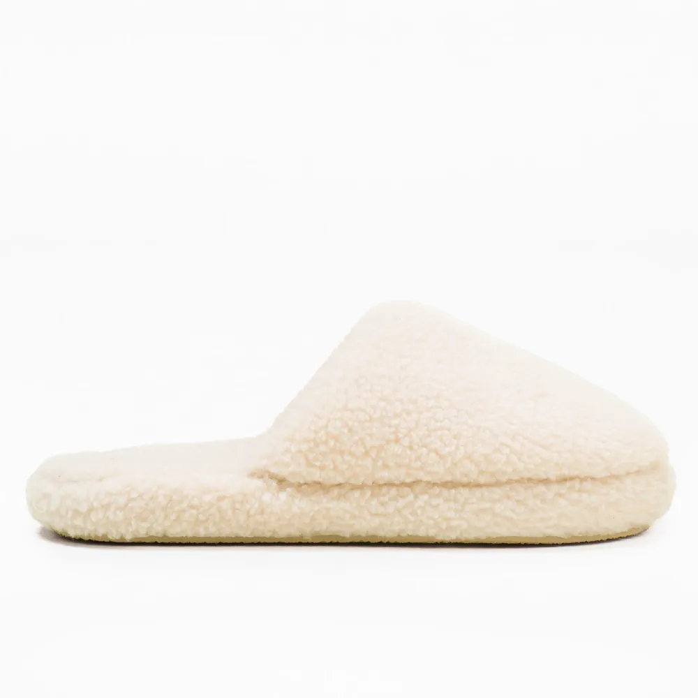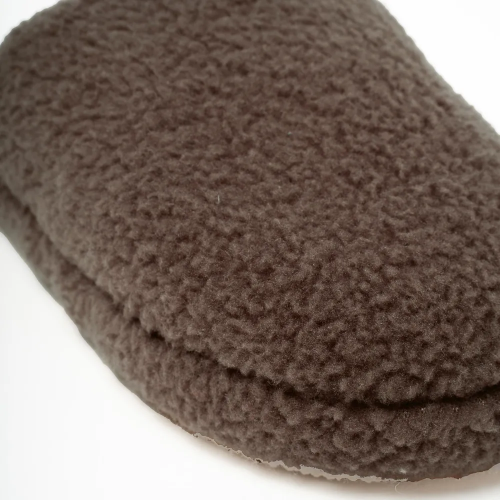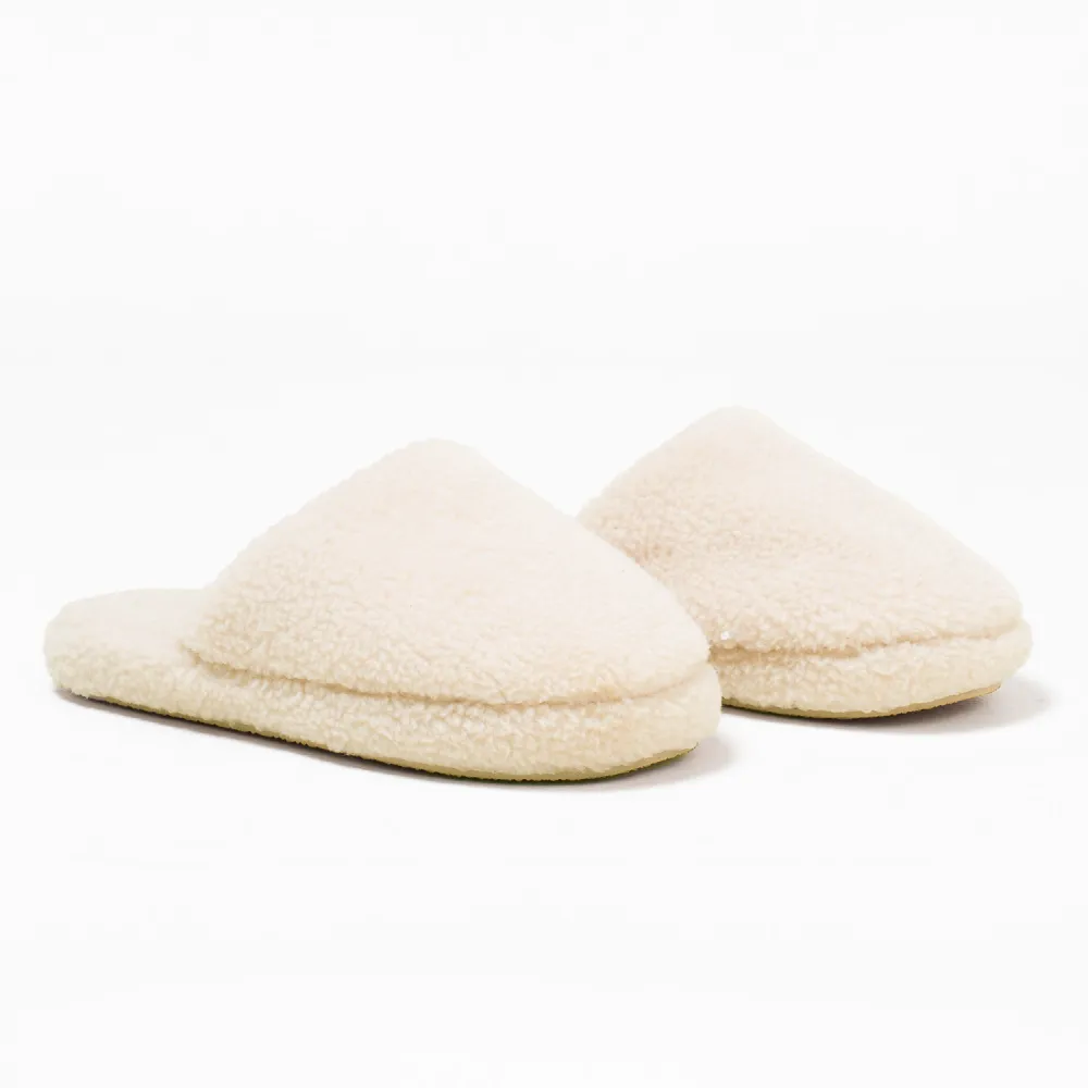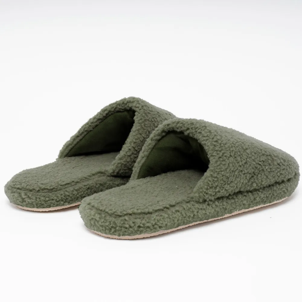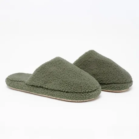 Chinelos de casa abertos com um design simples em cor lisa e com tecido tipo borreguinho.