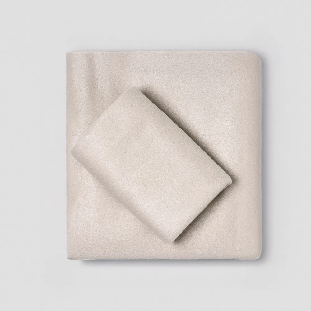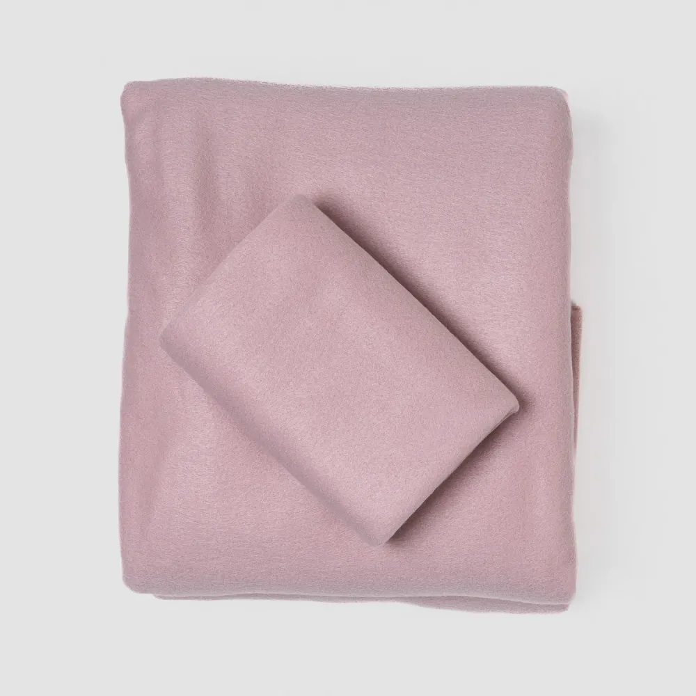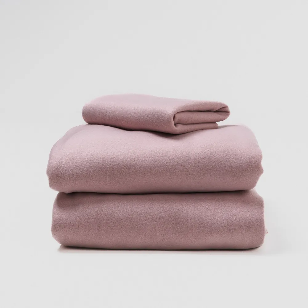 Lençóis e fronha de almofada lisos na cor malva. Toque suave e felpudo, ideais para o inverno pelas suas características térmicas. Tecido térmico que lhe dará uma sensação de calor e conforto.