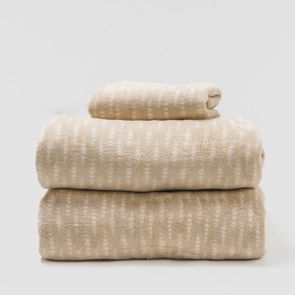 Toque muito suave, semelhante ao veludo com tecido de coralina, ideal para os meses frios de inverno.