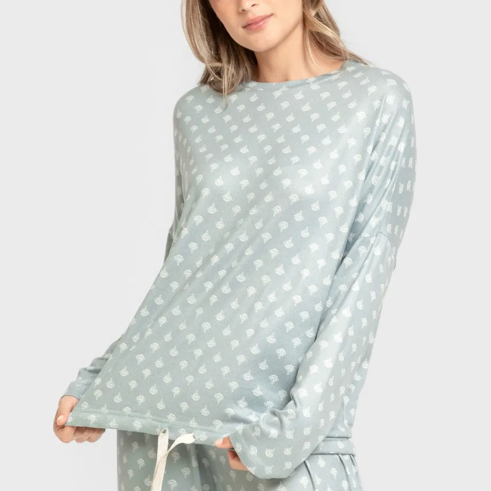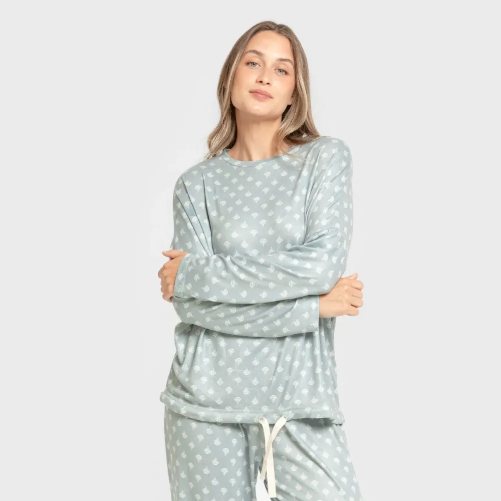 Pijama comprido Secret mulher Summer verde azulado