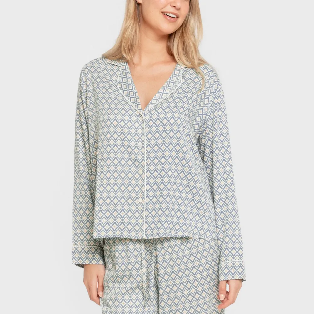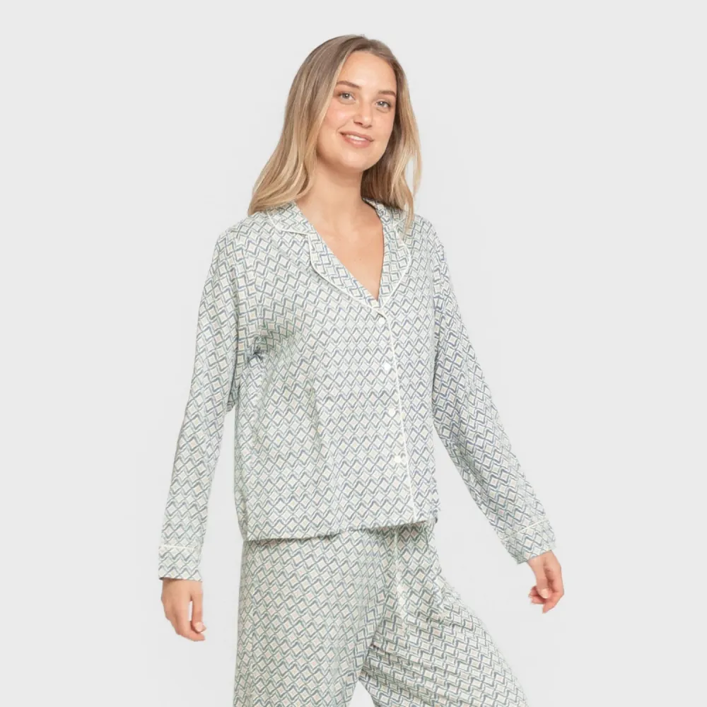 Pijama manga comprida camisero viscose mulher Raya Kodac areia