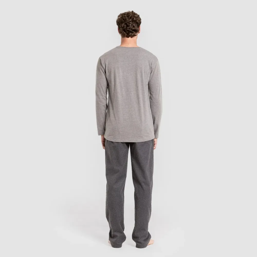 Pijama de homem composto por camiseta de manga comprida e calça comprida de flanela.