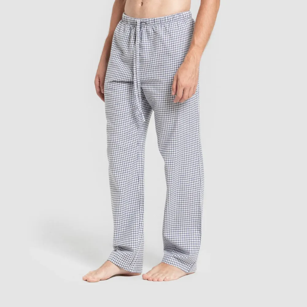 Pijama de flanela com manga comprida camisado homem modelo Quadros Saul azul
