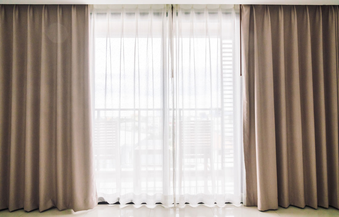 Para habitaciones con balcones lo que recomendamos y lo que mejor queda es una combinación de cortinas con visillos. Que ayudan a la entrada de luz sin perder privacidad