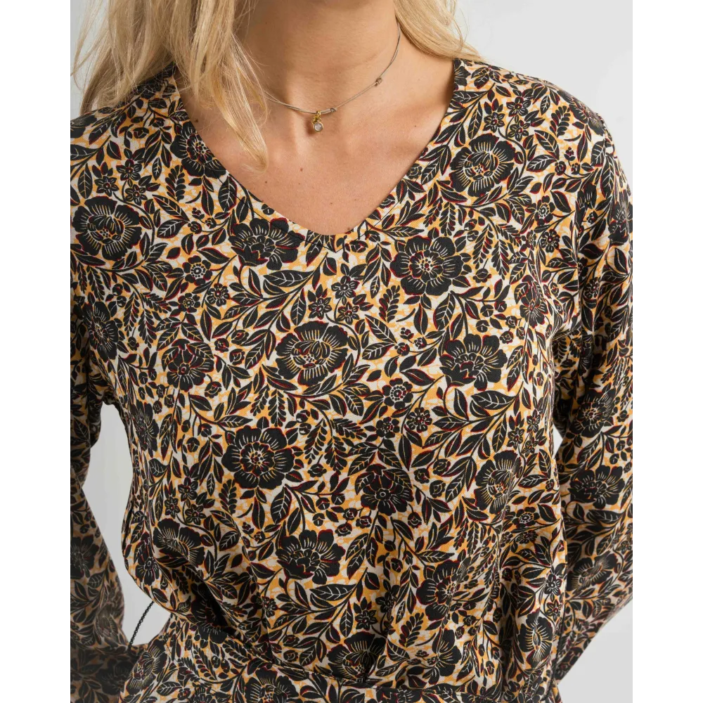 Vestido midi de manga comprida em viscose com decote em V Sophie