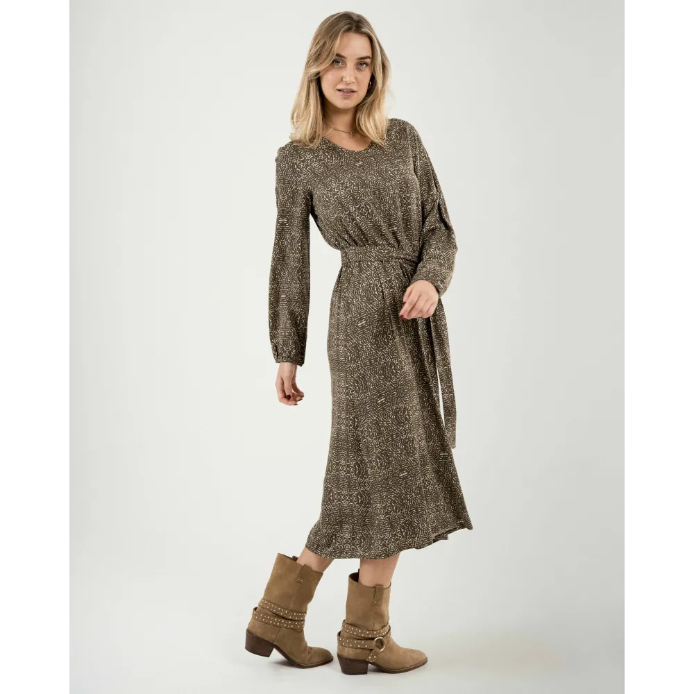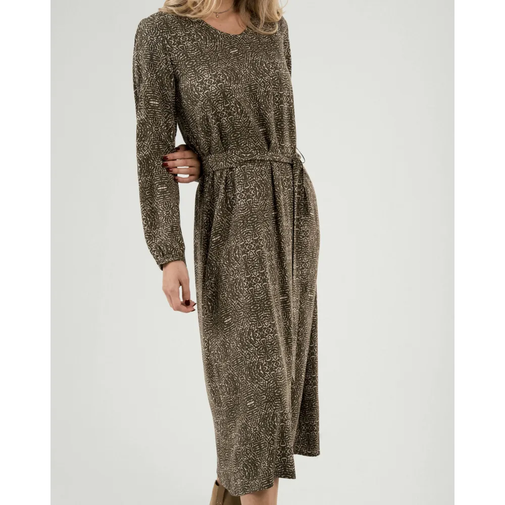 Vestido midi de manga comprida em viscose com decote em V Dalias verde caça
